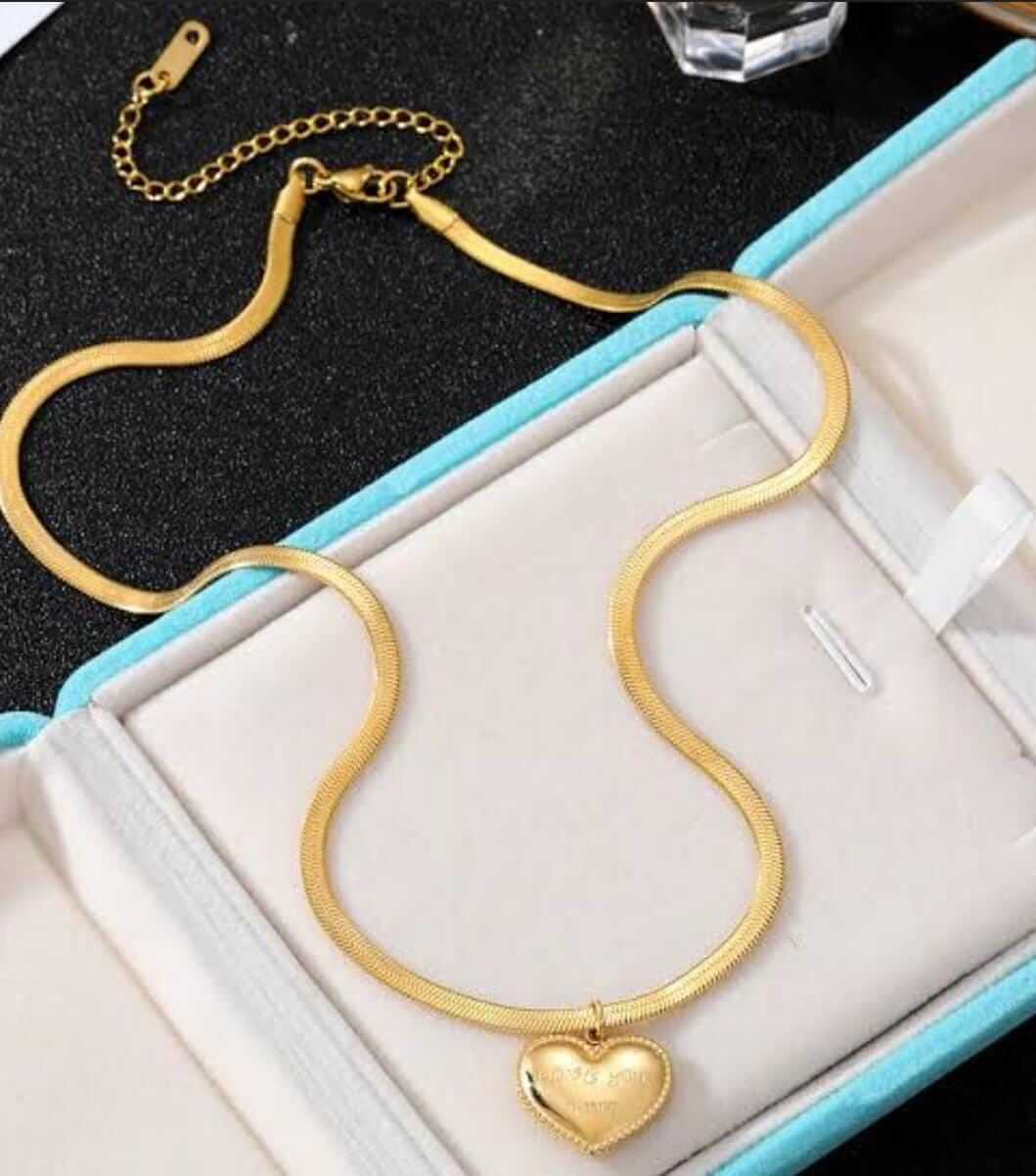 Express your love and elegance with this stunning Heart-Shaped Anti-Tarnish Necklace, crafted from premium stainless steel with a durable gold finish. Designed to resist fading, rust, and discoloration, this Korean-style necklace keeps its shine for years. Its delicate heart pendant shape adds a touch of romance and charm — perfect for daily wear, date nights, or gifting to someone special.